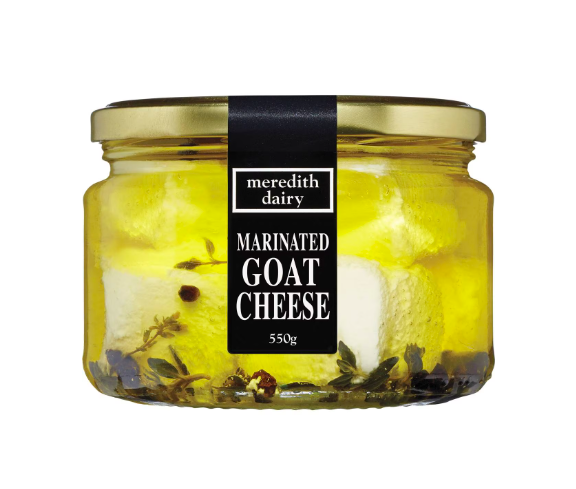 The signature-sized Marinated Goat Cheese will be the go-to item in your fridge. A delicious snack or accompaniment with practically any dish.